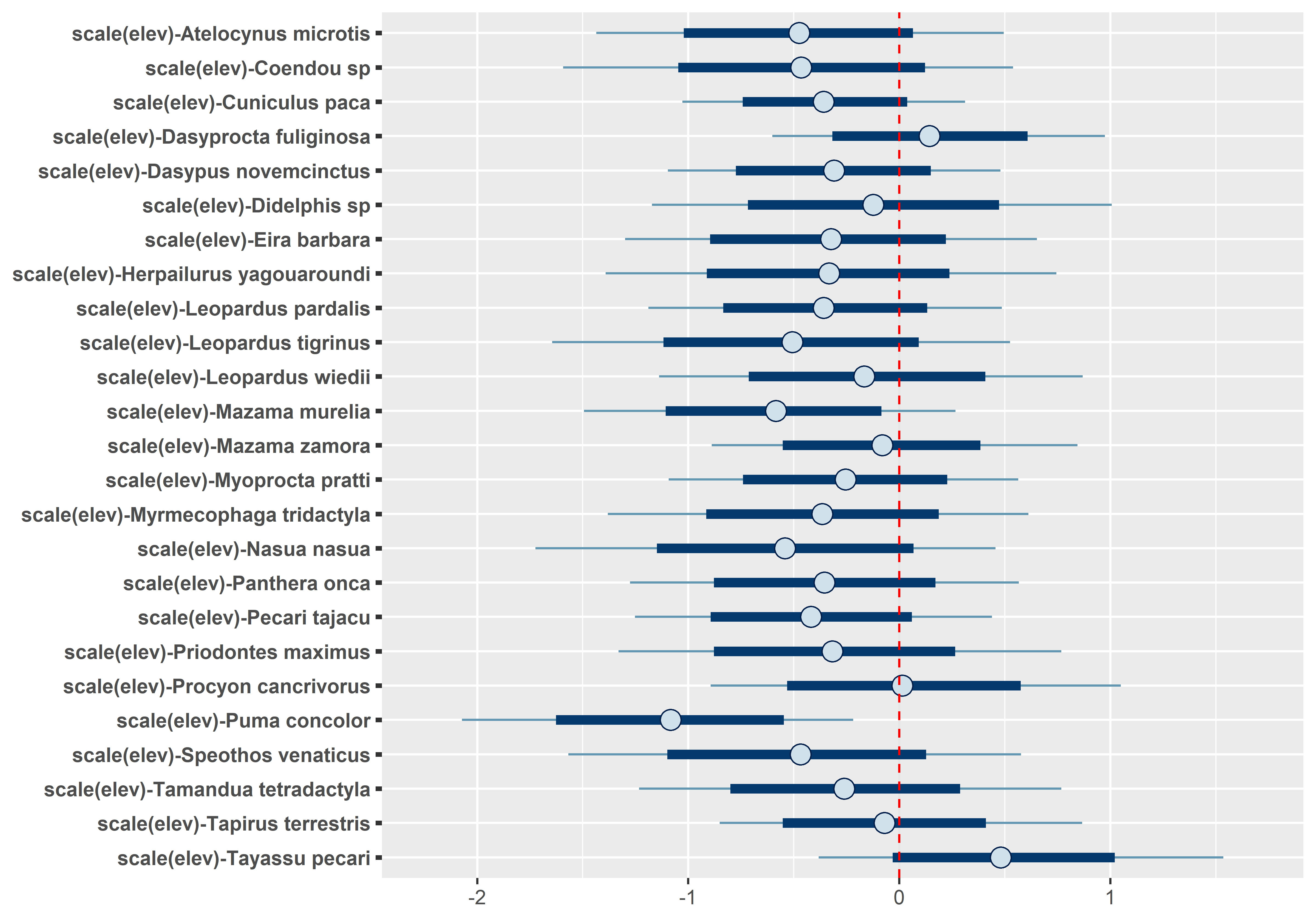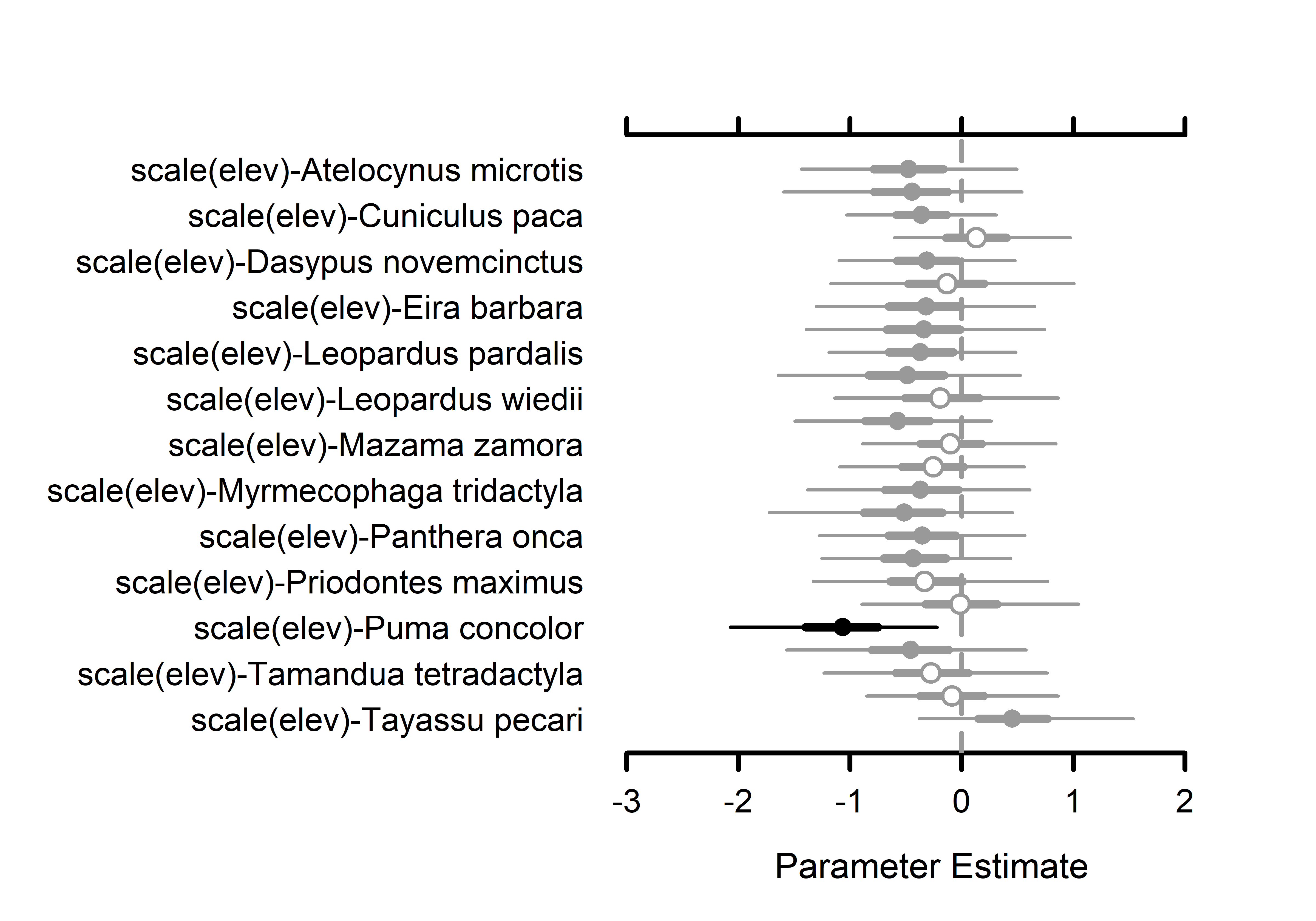 To account for several ecological factors we also tested and included elevation and forest integrity index as occupancy covariates.