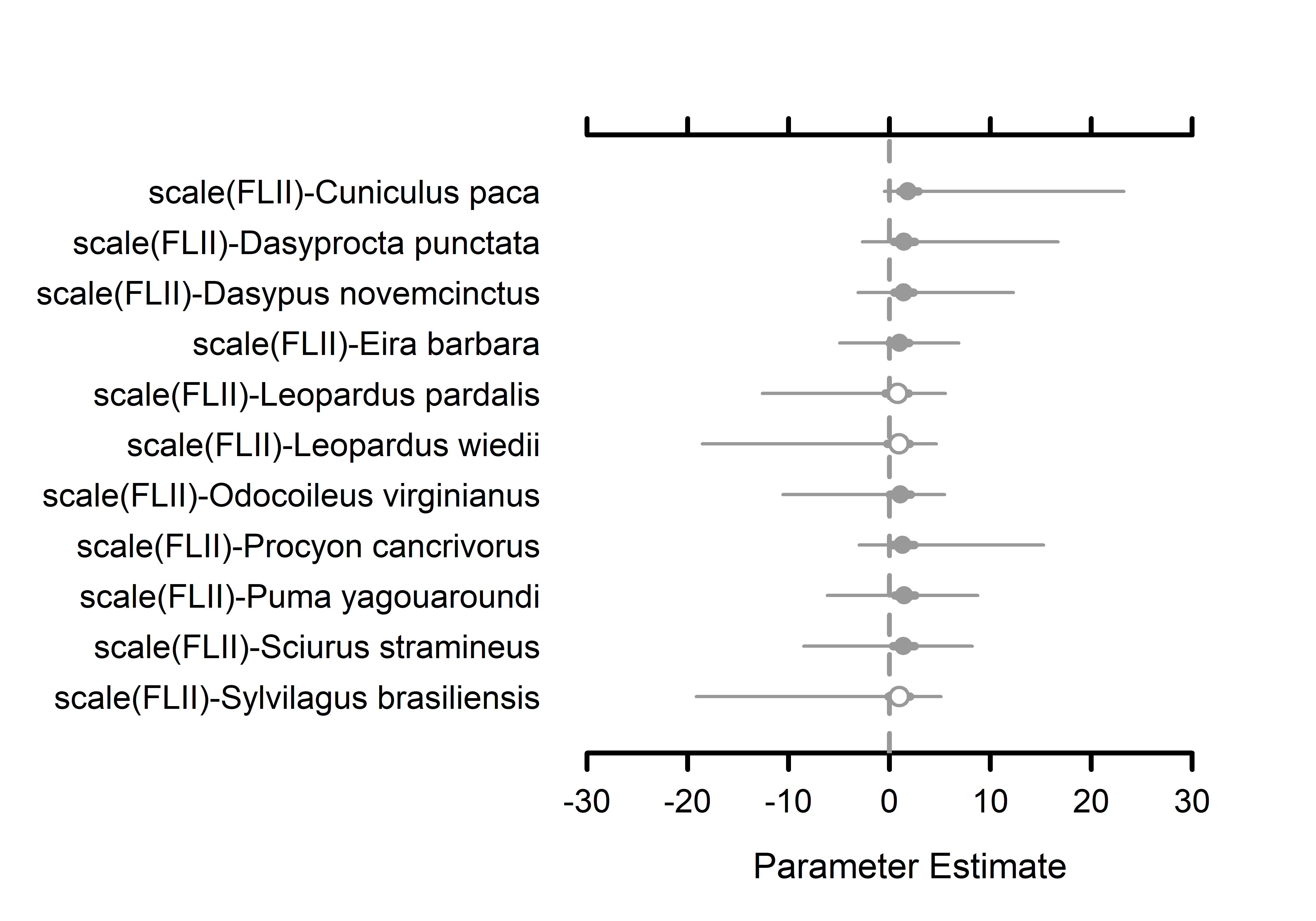 To account for several ecological factors we also tested and included elevation and forest integrity index as occupancy covariates.