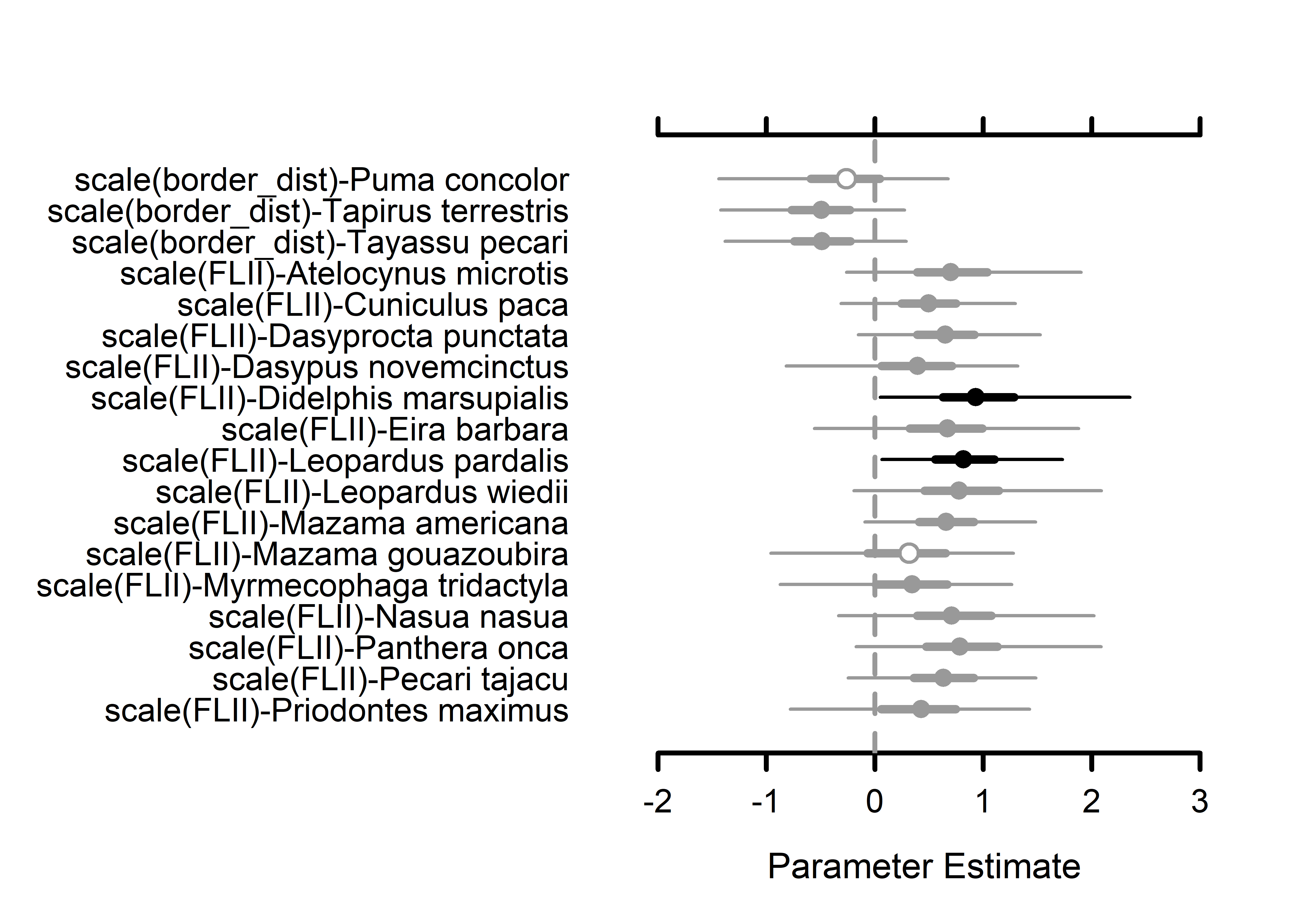 To account for several ecological factors we also tested and included elevation and forest integrity index as occupancy covariates.