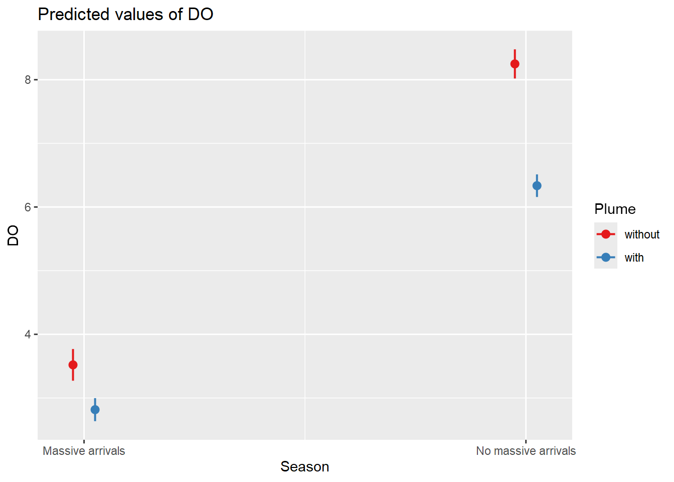 #> lm(formula = DO ~ Distance_coast + Plume + Season + Locality,